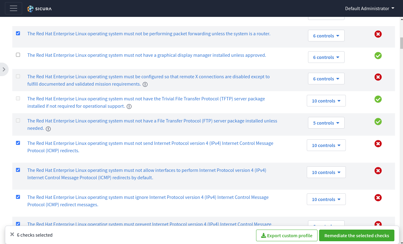 Sicura allows users to export subsets of policies in order to customize what is (or is not) enforced out of any given baseline policy.